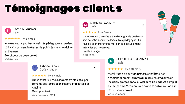 J’accompagne mes clients à chaque étape, de l’écriture au montage, en passant par les techniques de voix, l’enregistrement et la finalisation.